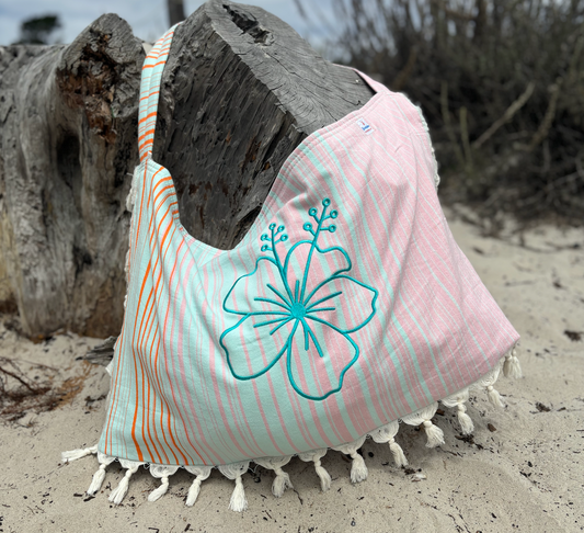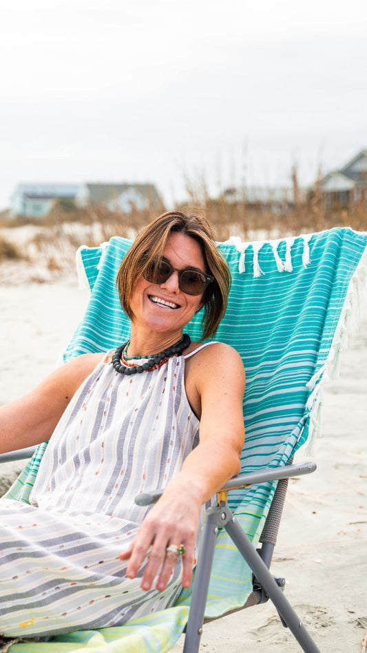 A sand-resistant 3-in-1 Turkish cotton beach bag that carries your towel, gear, & everyday essentials without feeling bulky. Use it for beach days, yoga classes, market runs, or outings with the kids, then make it your own with solid, print, or striped collections & optional custom embroidery.